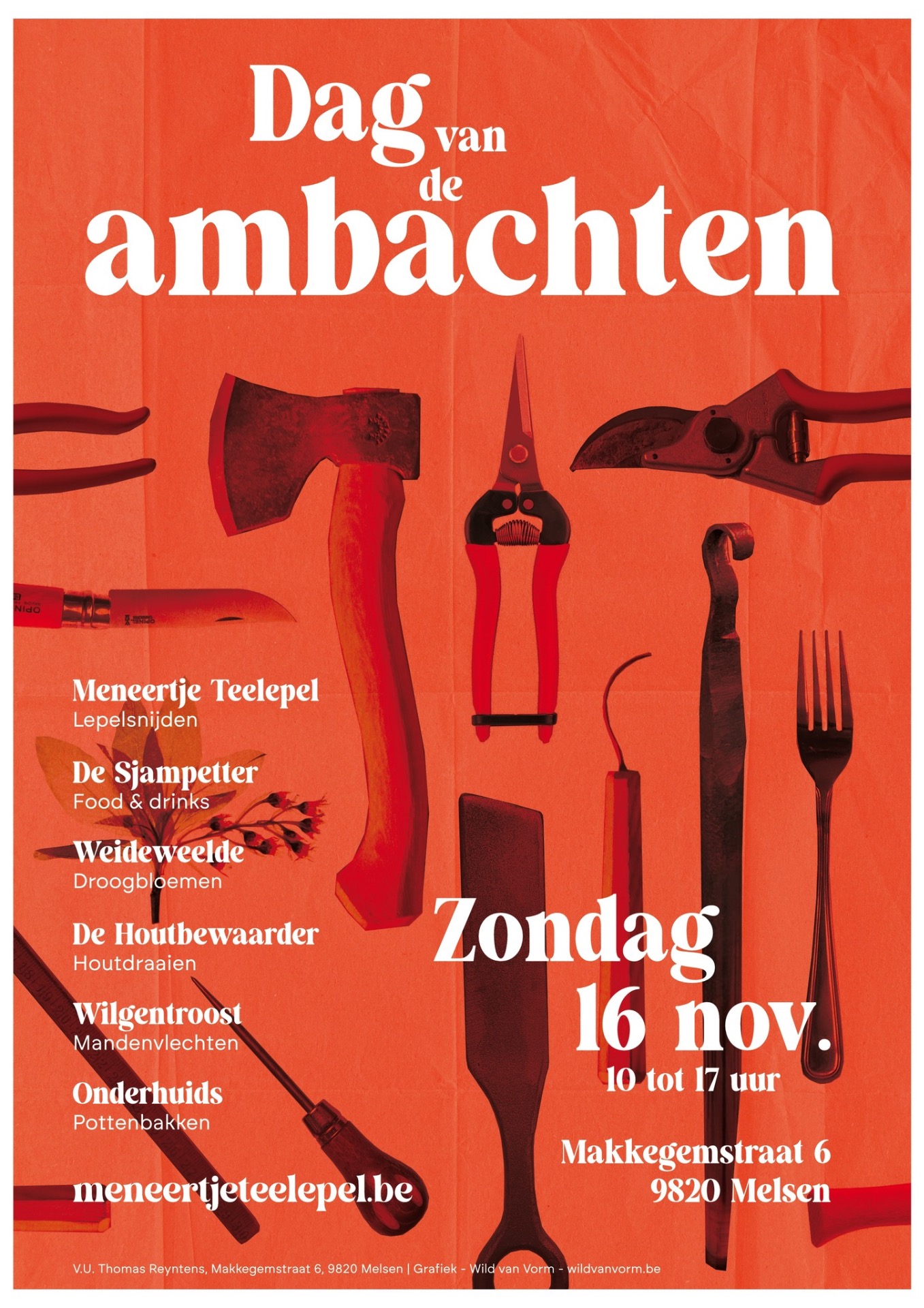 Op zondag 16 november vieren we de dag van de ambachten samen met 6 lokale makers in de tuin en op de weide bij Meneertje Teelepel. We maken er een gezellig feest van, waar je naast het ontdekken van onze ambachten ook zal kunnen genieten van iets lekkers om te eten en te drinken. Je kan ons aan...