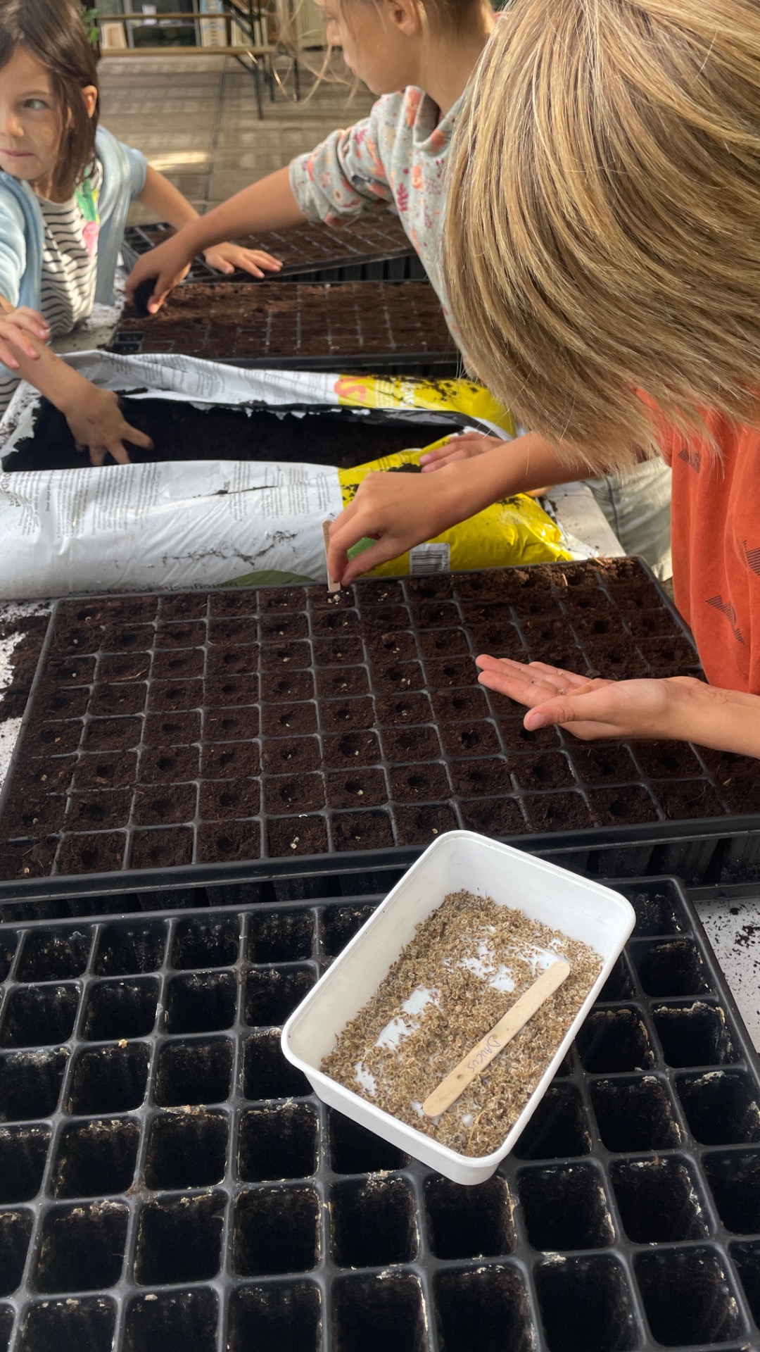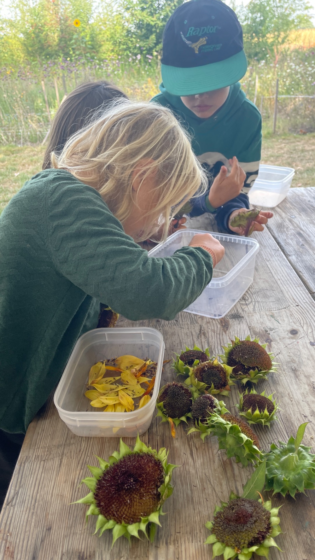 ° We zaaien, planten, wieden, oogsten en verwerken en zijn een ganse dag buiten
