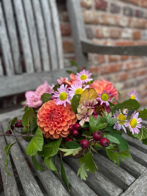Een ecologisch herfst*troost*bloemstukje met verse/droge bloemen om te koesteren, op het graf te leggen of dicht bij jou te houden.