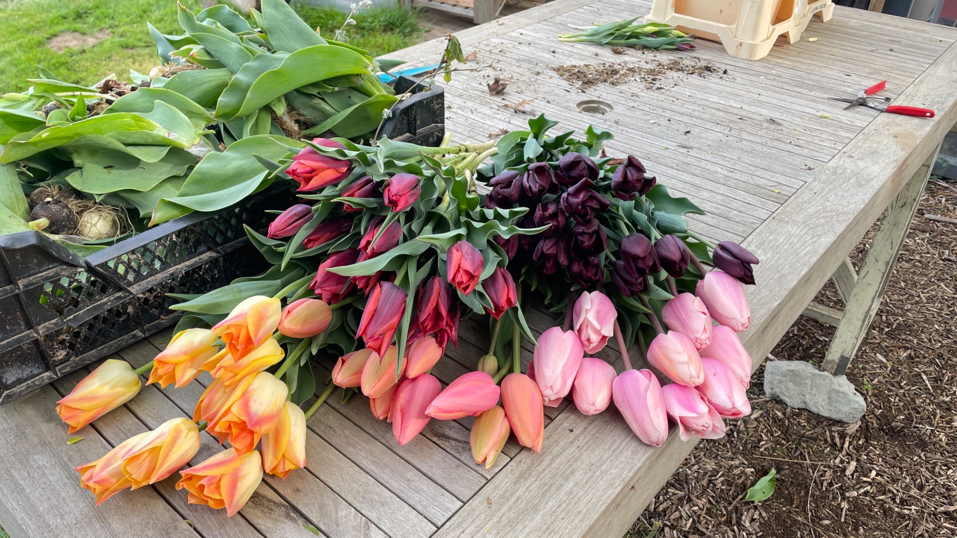 We plukken samen een boeket tulpen om er daarna mee aan de slag te gaan!